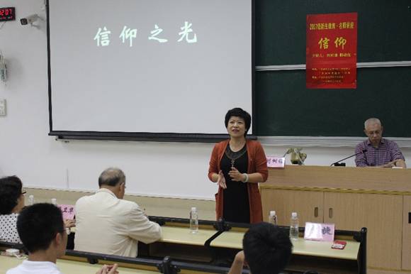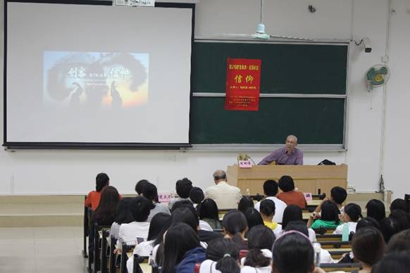 卢捷处长讲话中表示:学校关心下一代工作委员会对新生的教育工作很重视,开展此类教育讲座是必要的,对新生构建个人信仰,明确人生目标有重大意义。期盼新生们在信仰之光的指引下,走好人生路。