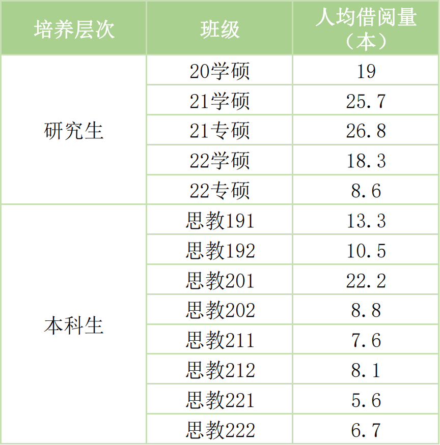 2022年度51吃瓜网 学生共借阅书籍3727本,人均借阅7.7本。其中本科生人均5.9本,研究生人均15.3本。