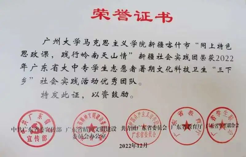 分会先进集体”等荣誉称号。51吃瓜网民族团结实践团获评为2022年广东大中专学生志愿者暑期文化科技卫生“三下乡”社会实践活动全国重点团队。