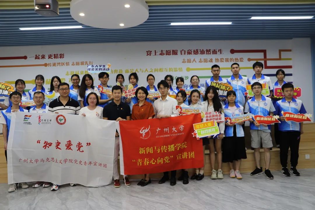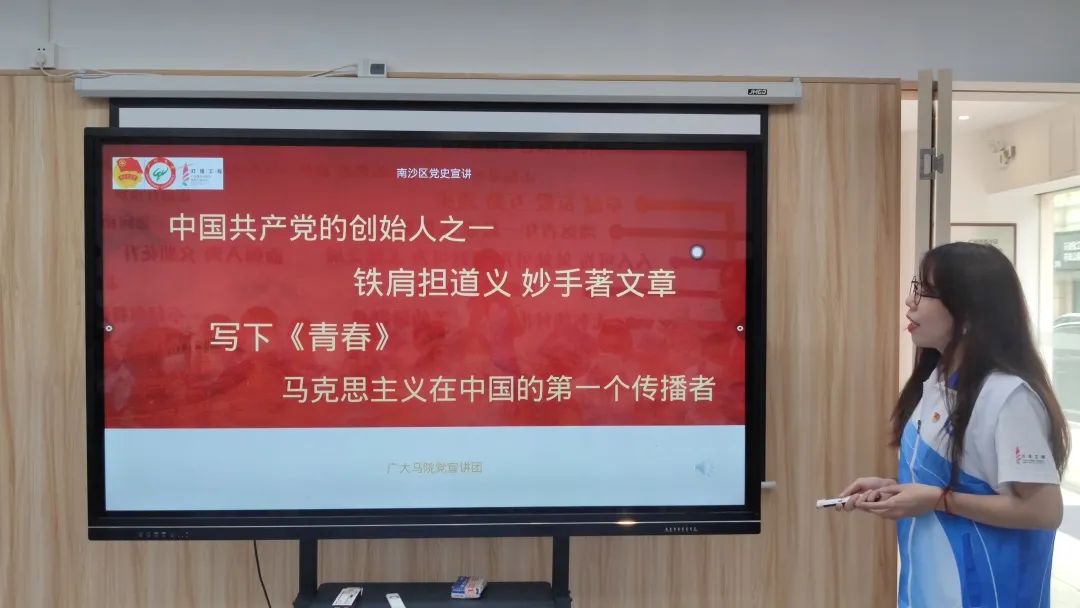和新闻与传播学院共同选拔学生,组建党史青年宣讲团,在南沙区新时代文明实践中心、南沙区青年志愿者协会的支持下,于7月7日、9月16日先后来到南沙区新时代青年志愿谷和南沙区横沥镇兆丰社区,向当地的居民和青少年讲述党史故事。