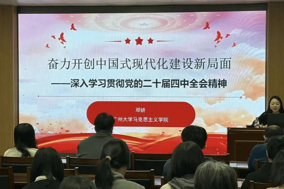 在广东省农业科学院、广州市团校,黄炬副教授以“在接续奋斗中谱写中国式现代化新篇章——深入学习贯彻党的二十届四中全会精神”为题,对全会精神进行了系统梳理和深度解读。