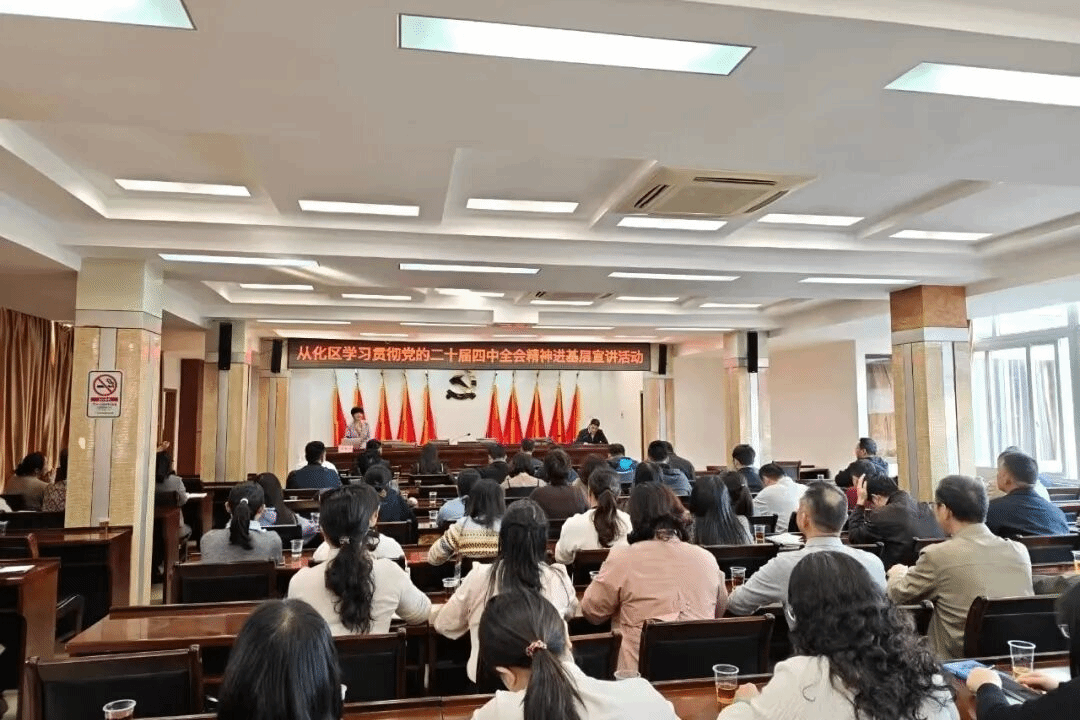 在从化区街口街道,徐德莉教授围绕党的二十届四中全会重要意义、“十四五”时期我国发展取得的新的重大成就、“十五五”时期我国发展环境面临的机遇与挑战、落实“十五五”规划的战略发展方向等四个方面,进行系统阐释和深入解读,为与会人员进一步学习领会全会精神提供了有力指导。