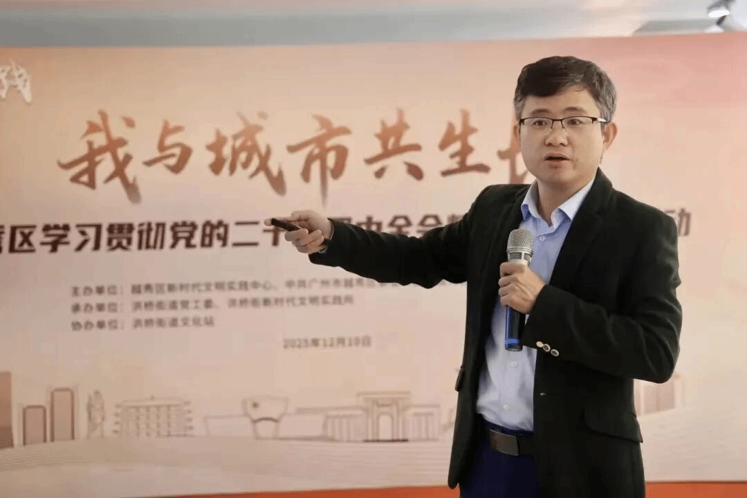 在番禺区桥南街道,谢红副教授系统解读党的二十届四中全会精神的核心内涵,为现场听众精准把握全会精神、推动工作落地见效提供了有力指导。