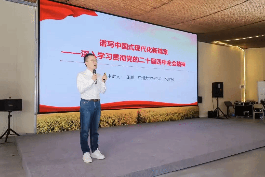 在增城区派潭镇,王鹏博士以“谱写中国式现代化新篇章——深入学习贯彻党的二十届四中全会精神”为题,用通俗易懂的语言解读了党的二十届四中全会精神核心要义,让基层干部对全会精神有了更深层次的理解,为投身“百千万工程”实践筑牢了思想根基。