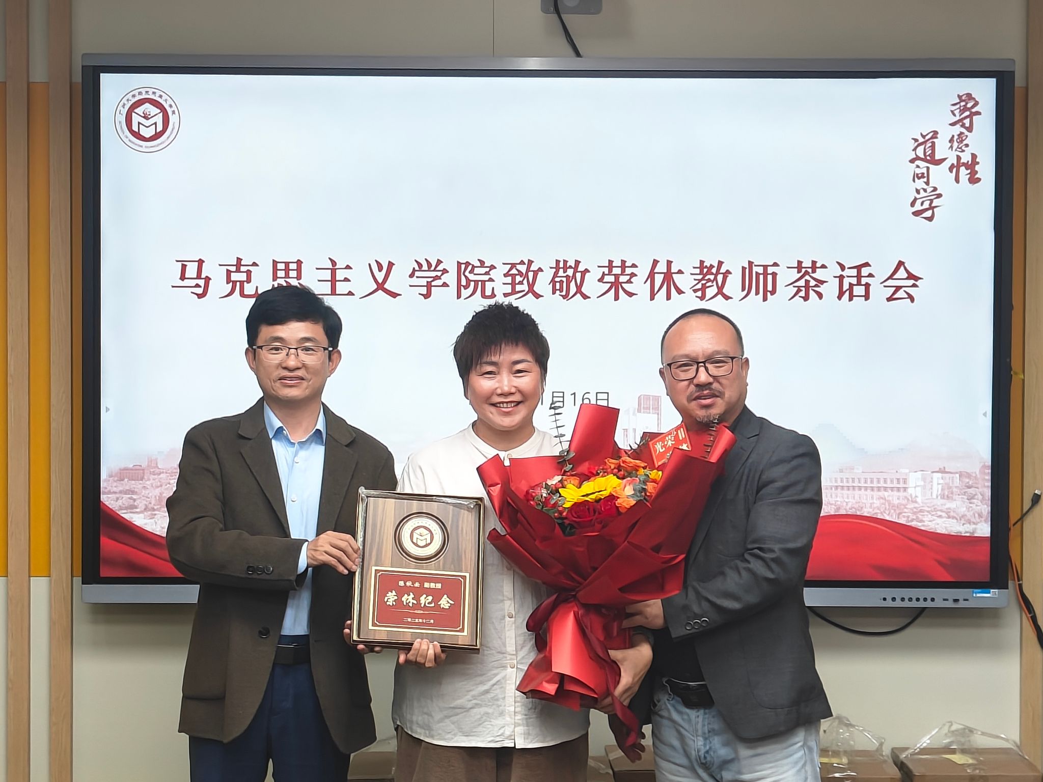 最后,中国近现代史纲要教研部主任谢红副教授作为教师代表表达了对荣休教师的崇高敬意与衷心感谢,表示要将以荣休教师为榜样,继承和发扬老一辈教师的优良传统,恪尽职守,锐意进取,为推动学院高质量发展和学生成长成才而接续奋斗。