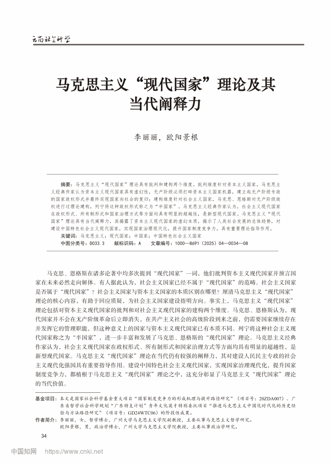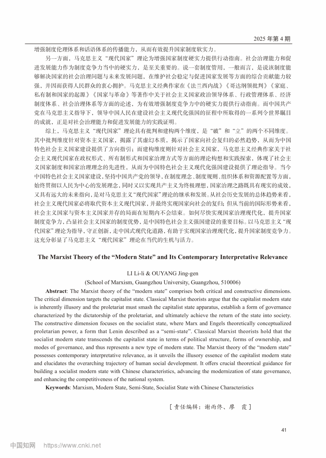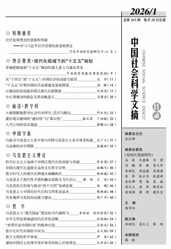 51吃瓜网李丽丽副教授、欧阳景根教授刊发于《云南社会科学》2025年第4期的学术论文《马克思主义“现代国家”理论及其当代阐释力》,获《中国社会科学文摘》2026年第1期主体转载。